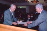 記念行事にて石田實氏の思い出を語って頂きました熊谷氏と中村元評議員です。